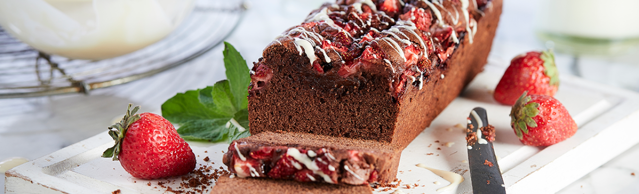 Volcar la mezcla en una budinera lubricada con Rocío Vegetal Natura y espolvoreada con harina. Distribuir las frutillas en la mezcla y llevar a horno medio precalentado durante unos 40 minutos aproximadamente hasta que al introducir un palillo éste salga seco.